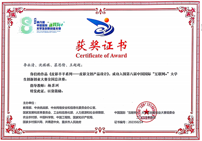 中國甘肅網(wǎng)7月12日訊(西北角·中國甘肅網(wǎng)記者 余守萱 通訊員 郭海霞)近日,從中國國際“互聯(lián)網(wǎng)+”大學生創(chuàng)新創(chuàng)業(yè)大賽組委會傳出喜訊,由環(huán)縣第二中學楊蘇洲老師指導,學生李永清、沈琪琪、慕思倩、王超超四人共同創(chuàng)作完成的作品《皮影羊羊系列——皮影文創(chuàng)產(chǎn)品設計》,成功入圍第八屆中國國際“互聯(lián)網(wǎng)+”大學生創(chuàng)新創(chuàng)業(yè)大賽全國總決賽。