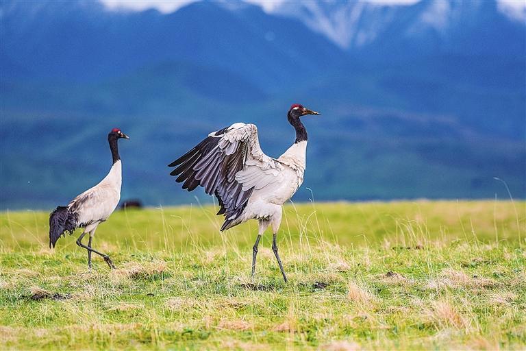 國家一級(jí)保護(hù)動(dòng)物黑頸鶴在瑪曲濕地繁殖數(shù)量逐年增加。