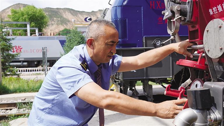 中國(guó)甘肅網(wǎng)7月9日訊 據(jù)蘭州晚報(bào)報(bào)道(記者 譚安麗 文/圖 通訊員 趙童)仲夏時(shí)節(jié),陽(yáng)光明媚,沐浴著大西北的陽(yáng)光,一列飛馳的鋼鐵巨龍?jiān)陔]海線群山中穿行。駕駛室內(nèi),56歲的司機(jī)劉曉明手握閘把、眼睛緊緊注視前方,操縱著機(jī)車穿山越谷,快速馳騁。