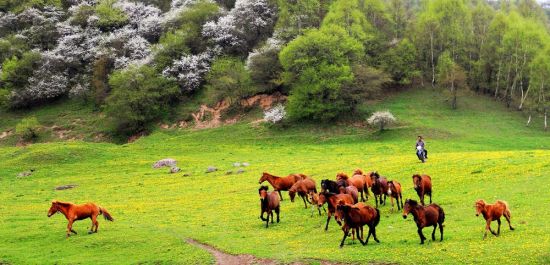關(guān)山在很長一段時(shí)間一直是中國重要的牧馬之地。據(jù)史書記載,大將衛(wèi)青、霍去病北征匈奴,曾從關(guān)山征集戰(zhàn)馬14萬匹,足見當(dāng)時(shí)這里牧馬業(yè)的繁盛。然而現(xiàn)在,馬的蹤跡只是景區(qū)的點(diǎn)綴,要想看到萬馬奔騰的場(chǎng)面,要去河西走廊的山丹軍馬場(chǎng)。