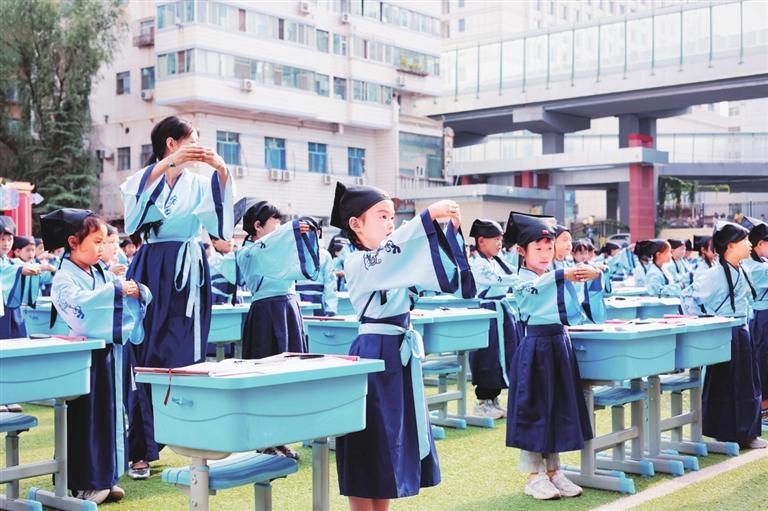 與此同時,蘭州市七里河區(qū)第二小學(xué)為270余名一年級新生也舉行了入學(xué)“開筆禮”儀式。