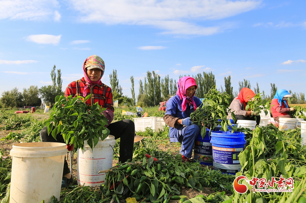 9月1日,嘉峪關市新城鎮(zhèn)長城村一農(nóng)民專業(yè)合作社種植的子彈頭辣椒喜獲豐收,種植戶搶抓農(nóng)時采摘,農(nóng)用機械車輛穿梭于田間地頭,鄉(xiāng)村田野呈現(xiàn)出一派繁忙的景象。