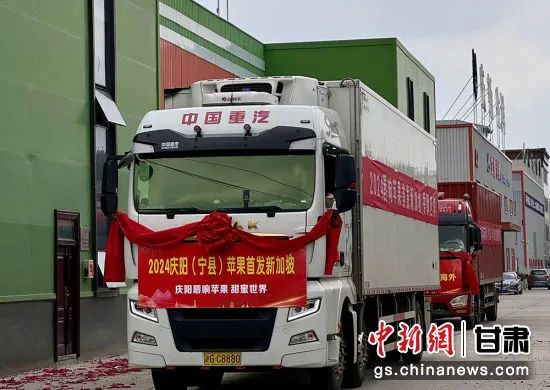 近日,甘肅慶陽蘋果首次出口新加坡。圖為滿載25噸蘋果的貨車出發(fā)。