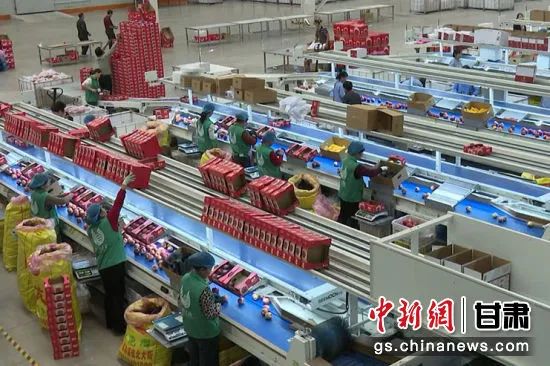 圖為寧縣慶新果業(yè)車間分揀蘋果。