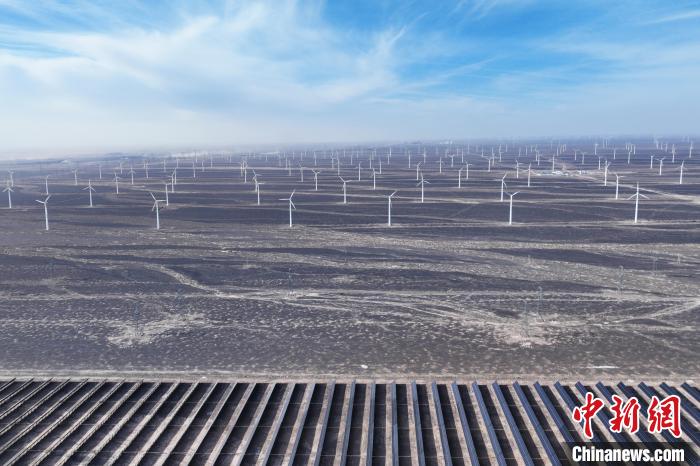 1月6日,航拍甘肅省酒泉市瓜州縣光伏和風(fēng)力發(fā)電項目。李亞龍 攝