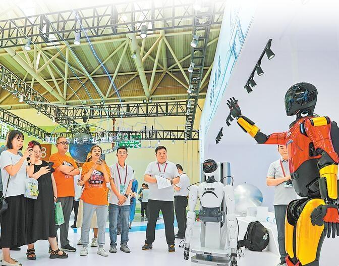 蘭州館內(nèi),參觀者與機(jī)器人展開互動(dòng)。本組圖片攝影:新甘肅·甘肅日?qǐng)?bào)記者 田蹊
