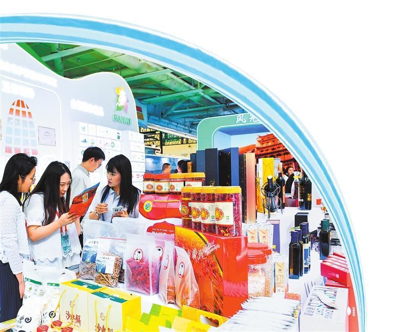 張掖館內(nèi),各類特色農(nóng)產(chǎn)品受到人們的青睞。 新甘肅·甘肅日?qǐng)?bào)記者 馬伊星