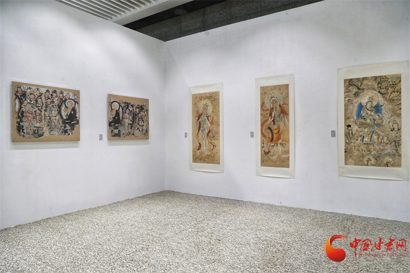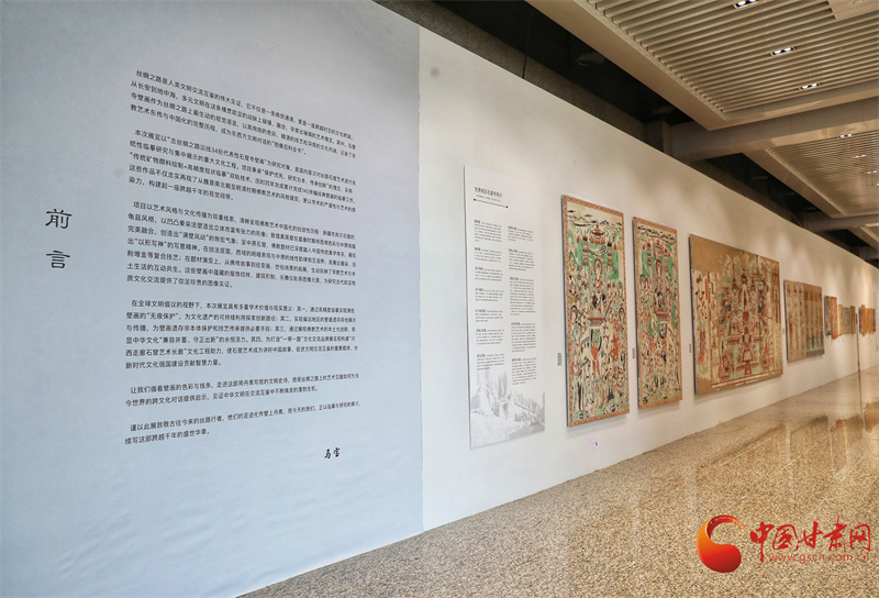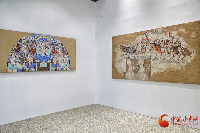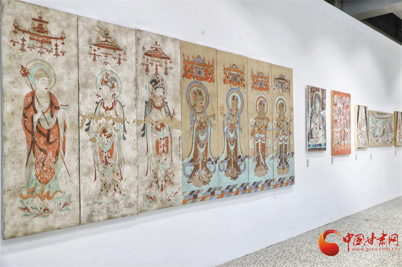 第八屆敦煌文博會“絲路華彩·盛世華章——敦煌及絲路沿線地區(qū)石窟寺壁畫藝術(shù)傳播與展示”專展,西北師范大學(xué)敦煌學(xué)院馬寶團隊帶來了絲路沿線34個石窟寺壁畫臨摹作品,以及流失海外的壁畫精品臨摹作品,系統(tǒng)梳理了以河西走廊石窟群為代表的絲綢之路沿線石窟壁畫藝術(shù),讓全世界的觀眾可以更直接參觀熠熠生輝的絲綢之路經(jīng)典壁畫。
