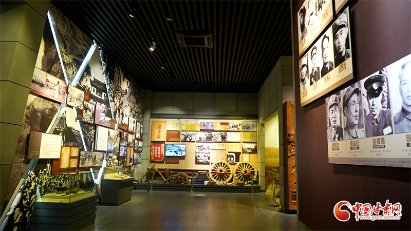 其中,巨幅半景畫配多媒體投影再現(xiàn)沈家?guī)X、營盤嶺、竇家山激戰(zhàn)。下沉式電子沙盤動態(tài)演示三軍合圍蘭州態(tài)勢。展柜陳列國家檔案局、中央檔案館調(diào)取的戰(zhàn)役電報、烈士證件、支前小車等原件290余件。