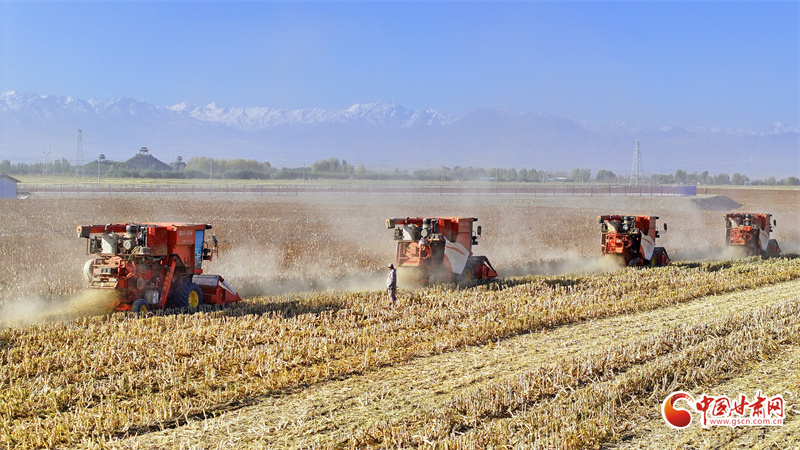 時(shí)下,在甘肅省張掖市民樂工業(yè)園區(qū)濱河集團(tuán)萬(wàn)畝原糧種植基地,農(nóng)機(jī)手駕駛收割機(jī)穿梭田間地頭收割高粱,一派繁忙豐收景象。