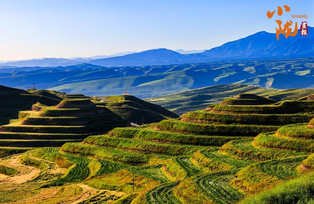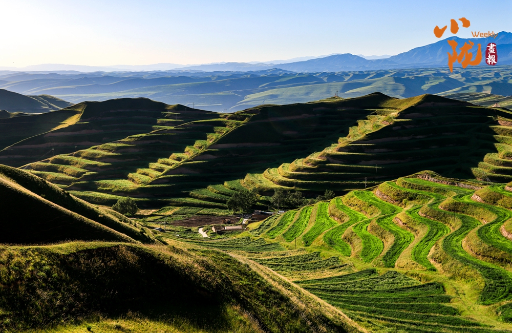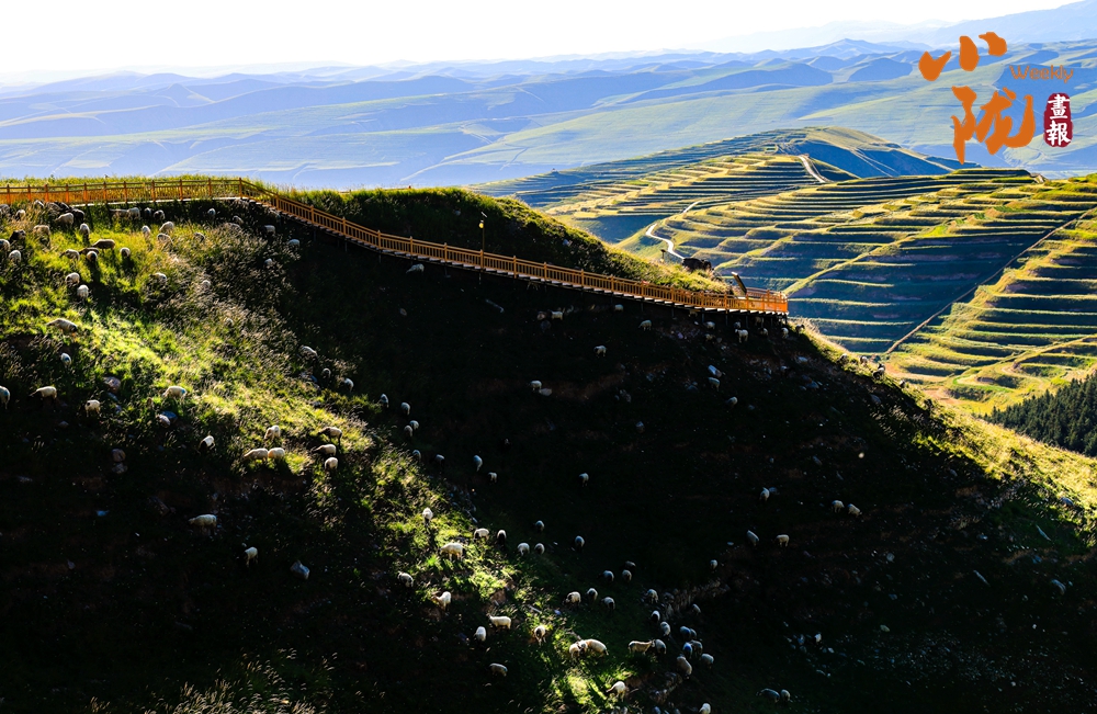 溝壑縱橫,滿目生綠。廣袤的田野在陽(yáng)光下盡情綻放著大自然的絢麗多彩,熱烈地期盼著新季節(jié)的到來(lái);羊群如散落的云朵,在坡地間緩緩移動(dòng),盡享這份寧?kù)o與和諧。