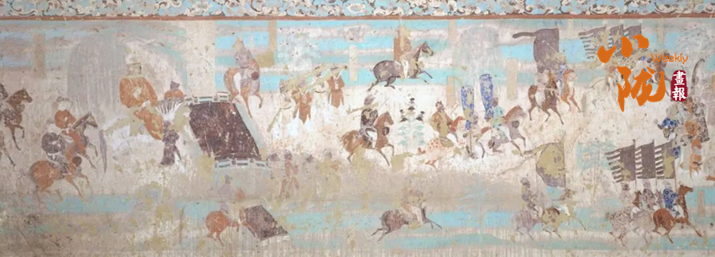 在甘肅璀璨的石窟藝術(shù)中,馬早已超越了具象的生靈,化作融入筆墨丹青的文化靈韻。莫高窟的壁畫里,馬的形象栩栩如生、各具風情:西魏249窟的青藍色翼馬,肩生雙翼、身姿輕盈,與仙人并肩起舞,藏著古人對天空與自由的向往;晚唐12窟的作戰(zhàn)圖中,戰(zhàn)馬披甲馳騁、泅水掙扎,真實還原了古戰(zhàn)場的慘烈與悲壯;盛唐時期的駿馬畫像,體態(tài)雄壯、氣度軒昂,每一筆勾勒都藏著時代的審美與家國情懷。