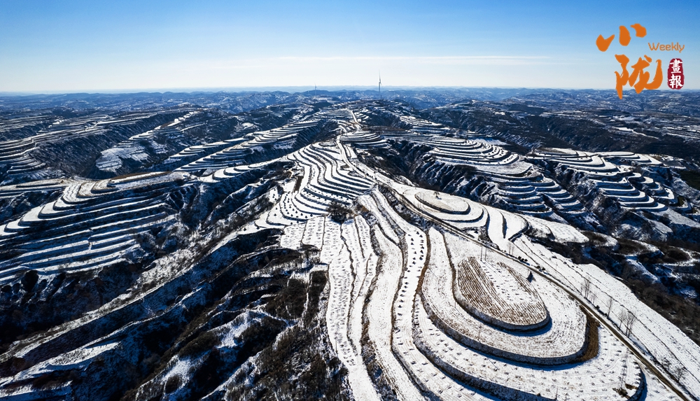 塬上樹木被雪輕輕點(diǎn)染,披上素白衣裳,與覆雪的梯田虛實(shí)相映,構(gòu)成一幅疏密有致、氣韻生動(dòng)的天然水墨畫,靜置于蒼茫天地間。