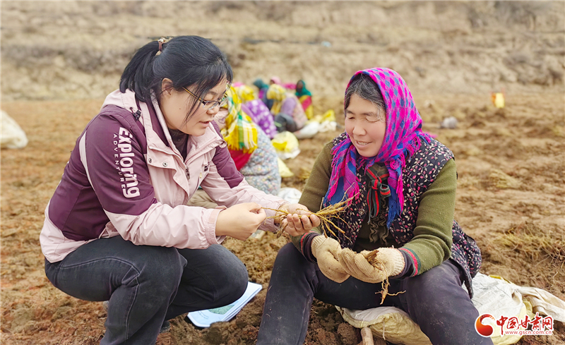 在中藥材繁育基地采挖現(xiàn)場,農(nóng)技人員重點講解了山旱地黃芩繁育技術(shù)、種苗貯存知識,指導農(nóng)戶掌握種苗采挖及貯存的環(huán)境溫度要求,降低運輸過程中因積壓溫度過高、蘆頭受損導致的出苗率下降風險,確保高標準育苗和移栽成活率。