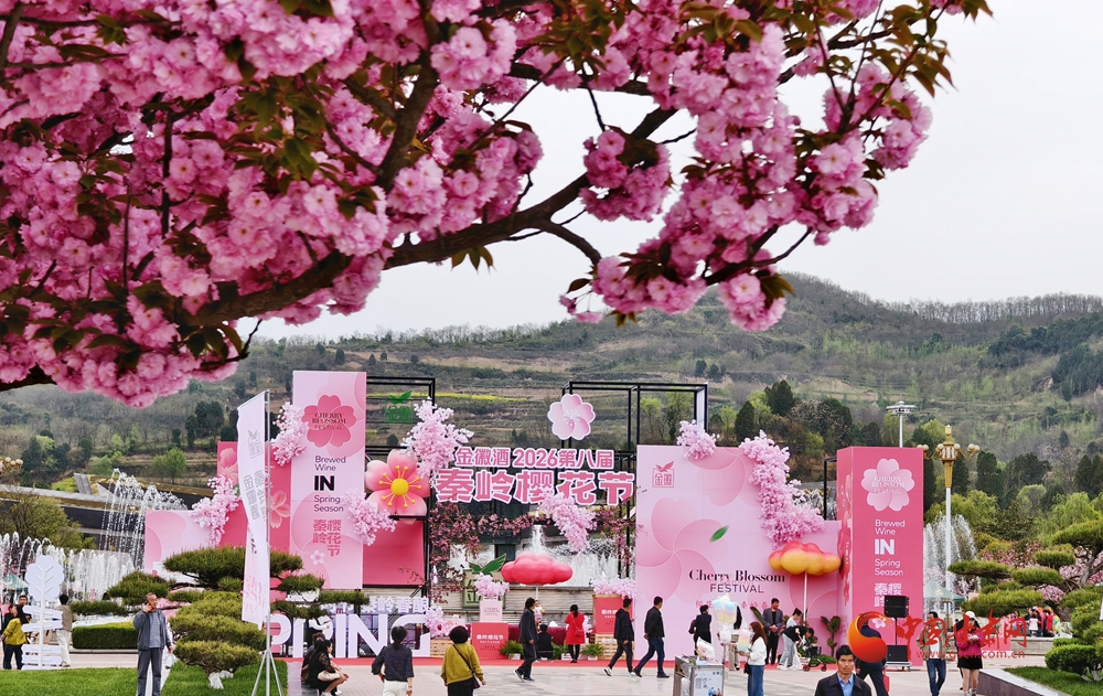 4月10日,2026第八屆金徽酒秦嶺櫻花節(jié)在金徽酒文化生態(tài)旅游景區(qū)啟幕。