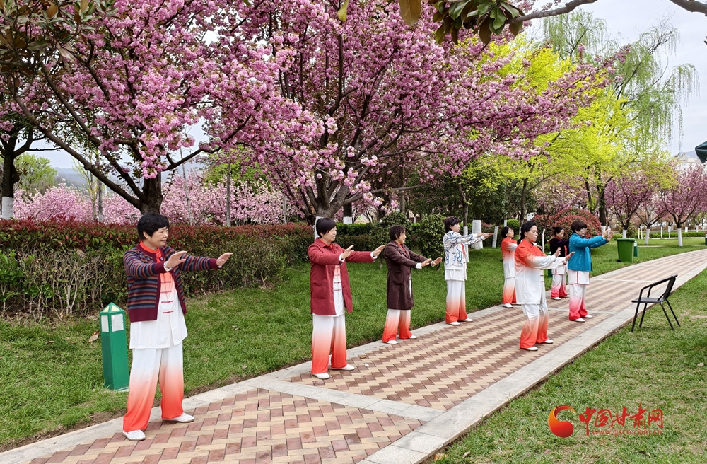4月11日,在金徽酒文化廣場(chǎng),游客正在打太極。