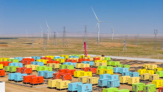 甘肅張掖臨澤板橋羊臺山300MW1200MWh獨立共享儲能電站。程剛/攝