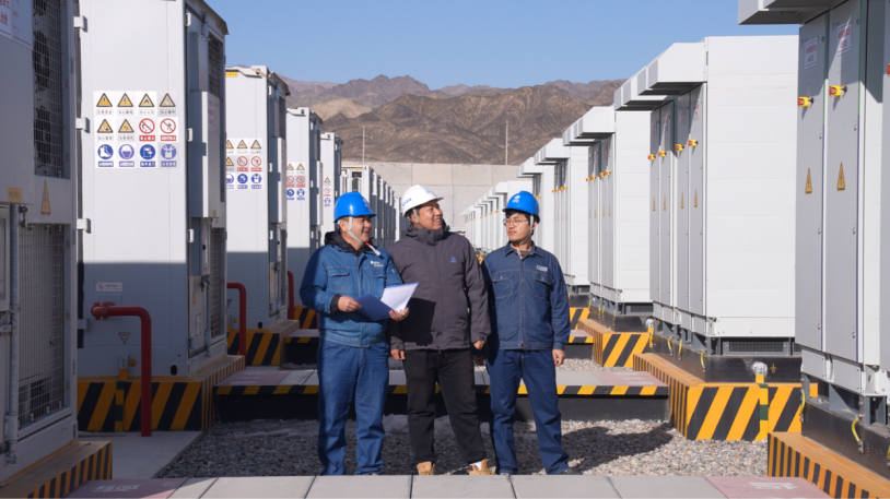 甘肅電力員工在嘉峪關為全省目前建成并網容量最大的電化學儲能電站——寧晟500兆瓦1000兆瓦時獨立儲能電站開展用電上門檢查服務。姜欣蓉/攝