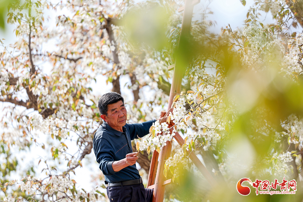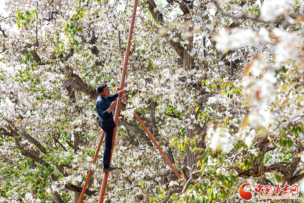 近日,蘭州市皋蘭縣什川鎮(zhèn)的古梨園迎來盛花期,滿樹梨花潔白如雪。果農(nóng)們搶抓晴好天氣,正忙著為梨花進(jìn)行人工授粉,以保障梨果豐收。什川古梨園歷史悠久,被譽(yù)為全球罕見的“活植物標(biāo)本”和珍貴的“梨園博物館”。