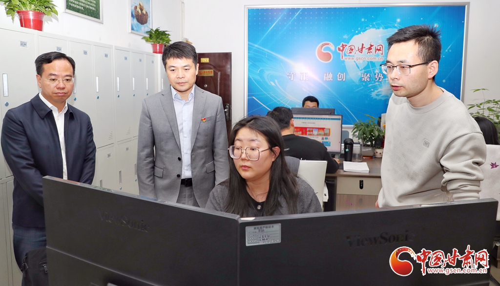 調(diào)研期間,余為政一行實(shí)地走訪了中國(guó)甘肅網(wǎng)融媒體中心、視頻部、輿情部等核心業(yè)務(wù)部門,與一線采編人員深入交流,詳細(xì)了解了融媒體內(nèi)容生產(chǎn)、輿情監(jiān)測(cè)分析等業(yè)務(wù)運(yùn)行情況,重點(diǎn)關(guān)注網(wǎng)站在新聞采編流程創(chuàng)新與全媒體矩陣運(yùn)營(yíng)方面的探索實(shí)踐。調(diào)研人員還現(xiàn)場(chǎng)體驗(yàn)了“智慧黨建甘肅紅云平臺(tái)”,借助VR全景技術(shù)沉浸式參觀了紅色展館,深入了解了智慧黨建各功能模塊及甘肅特色數(shù)字展館的建設(shè)成果。