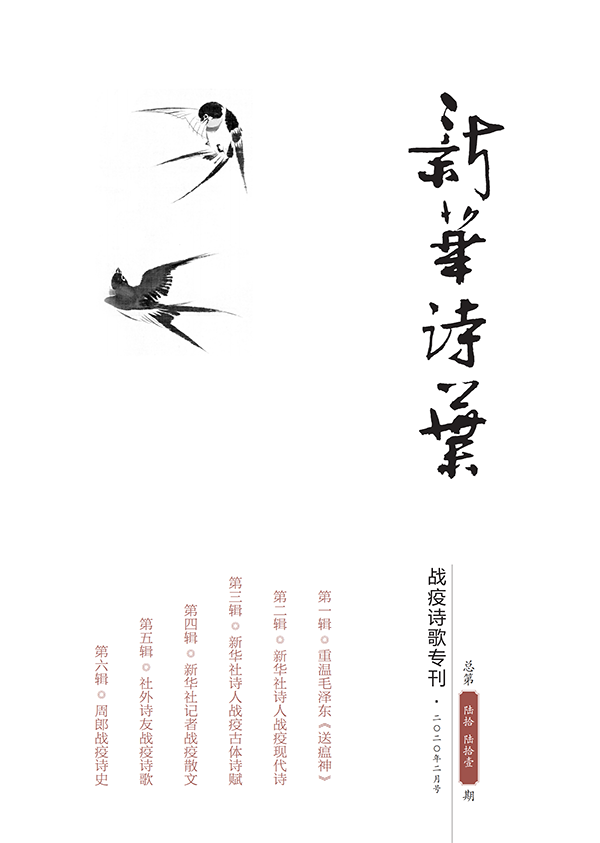 《戰(zhàn)疫詩歌??肥窃谛氯A社原副社長何東君,原社黨組成員、秘書長張錦的共同倡議策劃和組織指揮下,在較短時(shí)間內(nèi)高效率、高質(zhì)量完成的。這本??襁_(dá)140多頁,共由六大單元組成。其中,第一輯開篇重溫毛澤東《送瘟神》,由何東君撰文回顧新中國戰(zhàn)勝血吸蟲病的悲壯歷史,以期為今日抗擊疫情汲取戰(zhàn)天斗地的民族精神力量;第二、第三輯分別刊登新華社記者編輯們抗疫主題的現(xiàn)代詩和古體詩,風(fēng)格或豪放雄渾,或沉郁含蓄;最后一輯是周郎戰(zhàn)疫詩史專輯,專門刊登新華社高級(jí)編輯周清印的180首原創(chuàng)抗疫題材詩詞,彰顯對(duì)中華詩史傳統(tǒng)基因的繼承創(chuàng)新。