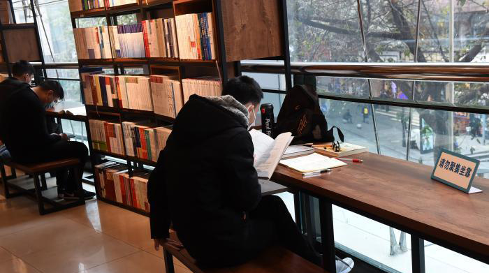 資料圖:圖為重慶書城恢復營業(yè),市民戴著口罩閱讀。 周毅 攝