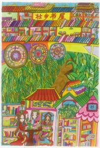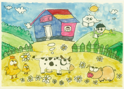 面對這部由中國少年兒童新聞出版總社出版的《“我的書屋·我的夢”——2019年農(nóng)村少年兒童閱讀實(shí)踐活動(dòng)優(yōu)秀作品集》,讓人欣喜的是,它不但有文字,還有很多入選的畫作,孩子們運(yùn)用了大膽的色彩、大膽的想象、大膽的線條,恣肆地描繪著他們的夢和憧憬,這些夢根植于他們生活的山鄉(xiāng)曠野,又呼應(yīng)著遠(yuǎn)方、星辰與大海。我尤其記得其中的一幅,那是一座高聳的書塔,那種拔地而起、直上云霄的氣勢,是一種象征,是一種隱喻,是這一代孩子想站到巨人肩上的渴望,是他們對祖國明天最美好的祝福和期待,也是中華民族必將走向復(fù)興的昭示。