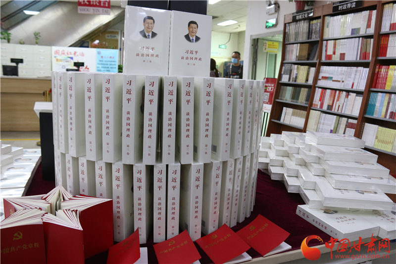 中國甘肅網(wǎng)7月8日訊 (本網(wǎng)記者 張?zhí)m琴 文/圖)記者從甘肅省新華書店了解到,隨著《習(xí)近平談治國理政》第三卷開始在全國發(fā)行,7月6日我省首批到貨10萬冊,即日起在全省88家新華書店門店發(fā)行,并設(shè)置專臺陳列,重點(diǎn)展示銷售,讀者反響熱烈,目前已銷售5200余冊。