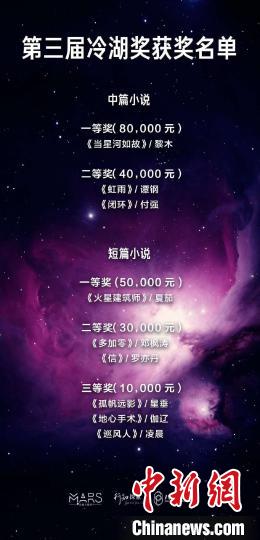 圖為第三屆冷湖獎獲獎名單?!O睿 攝