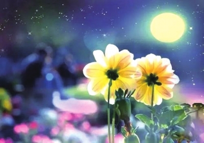 花園里的菊花正散發(fā)著一陣陣醇香樸實的氣息。似乎在這皎潔清麗的夜里,有一位芳菲馥馥的仙女在飛舞;有一種甜蜜、神圣、超自然的明澈又朦朧的力量在盤旋。
