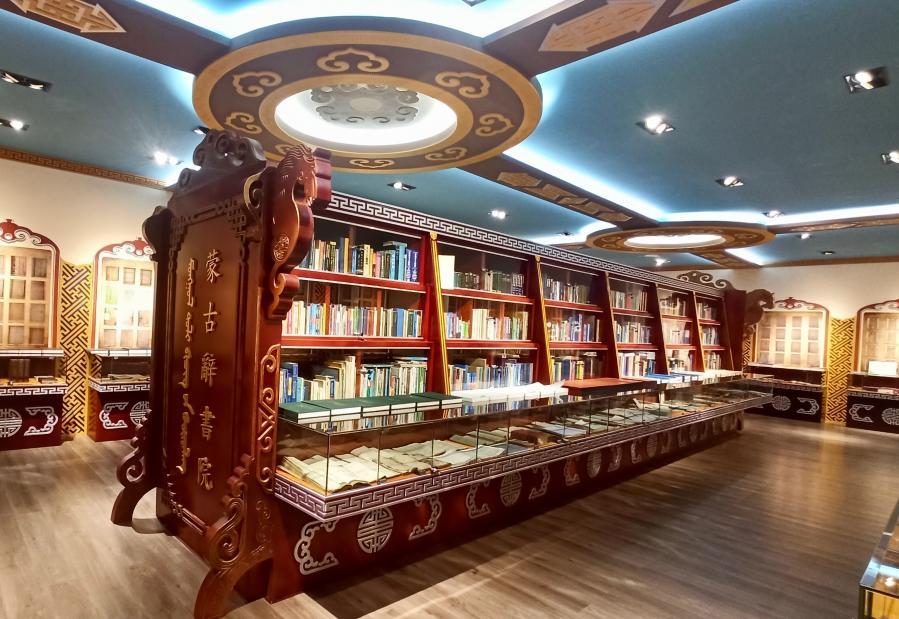 2019年,在鎮(zhèn)里的幫助下,孟克達(dá)來用自己的部分藏書在圖克鎮(zhèn)建起一座蒙古辭書院,免費(fèi)展出來自十多個國家和地區(qū)的蒙古學(xué)辭書、辭書研究資料和辭書原稿近2600冊。“我希望用這樣的方式讓更多的人了解蒙古學(xué)辭書,為辭書研究者提供蒙古學(xué)辭書的原始資料,讓我們的后代也養(yǎng)成愛讀書的習(xí)慣。”孟克達(dá)來說。