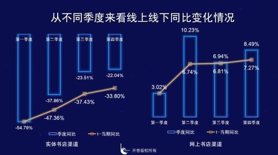從不同類型書店來(lái)看,一二線城市以及超大書城類同比下滑嚴(yán)重,全年同比降幅均在35%以上,從不同季度來(lái)看,不同類型書城和整個(gè)實(shí)體店渠道趨勢(shì)變化類似。