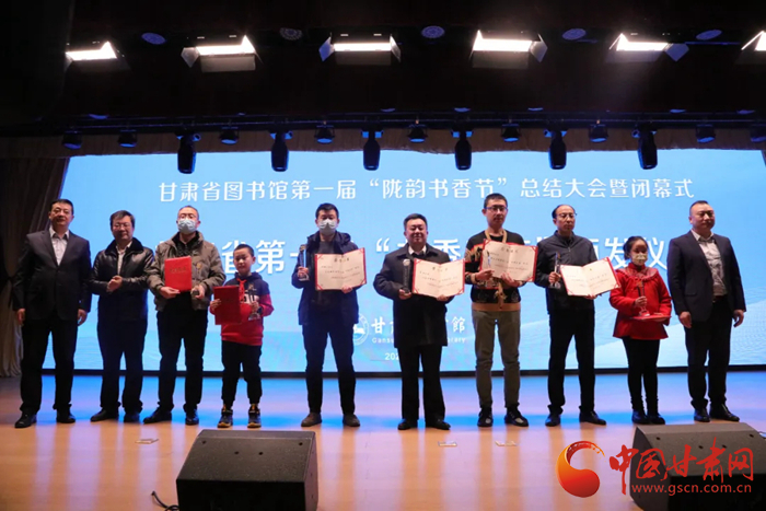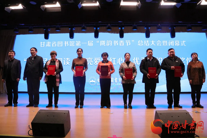中國甘肅網(wǎng)12月28日訊(本網(wǎng)記者 張?zhí)m琴 通訊員 吳鵬)12月27日,歷時8個月的甘肅省圖書館第一屆隴韻書香節(jié)圓滿落幕。閉幕儀式上播放了第一屆“隴韻書香節(jié)”活動總結(jié)短片和書香家庭宣傳短片,公布了“隴韻書香節(jié)”形象標(biāo)識(LOGO)方案,并為“甘肅省第一屆書香家庭”獲得者、“紅色經(jīng)典閱讀 點亮愛黨紅心”活動獲獎?wù)哳C獎。