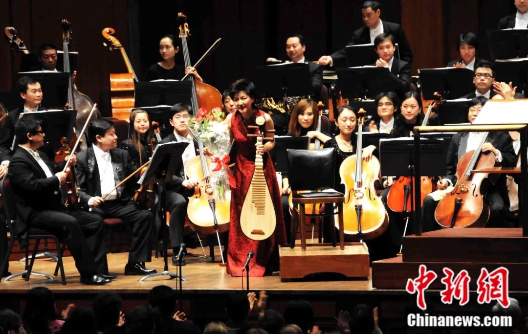 2009年2月,“琵琶皇后”美譽(yù)的章紅艷在美國(guó)肯尼迪藝術(shù)中心演奏《琵琶協(xié)奏曲》后謝幕。中新社記者 邱江波 攝