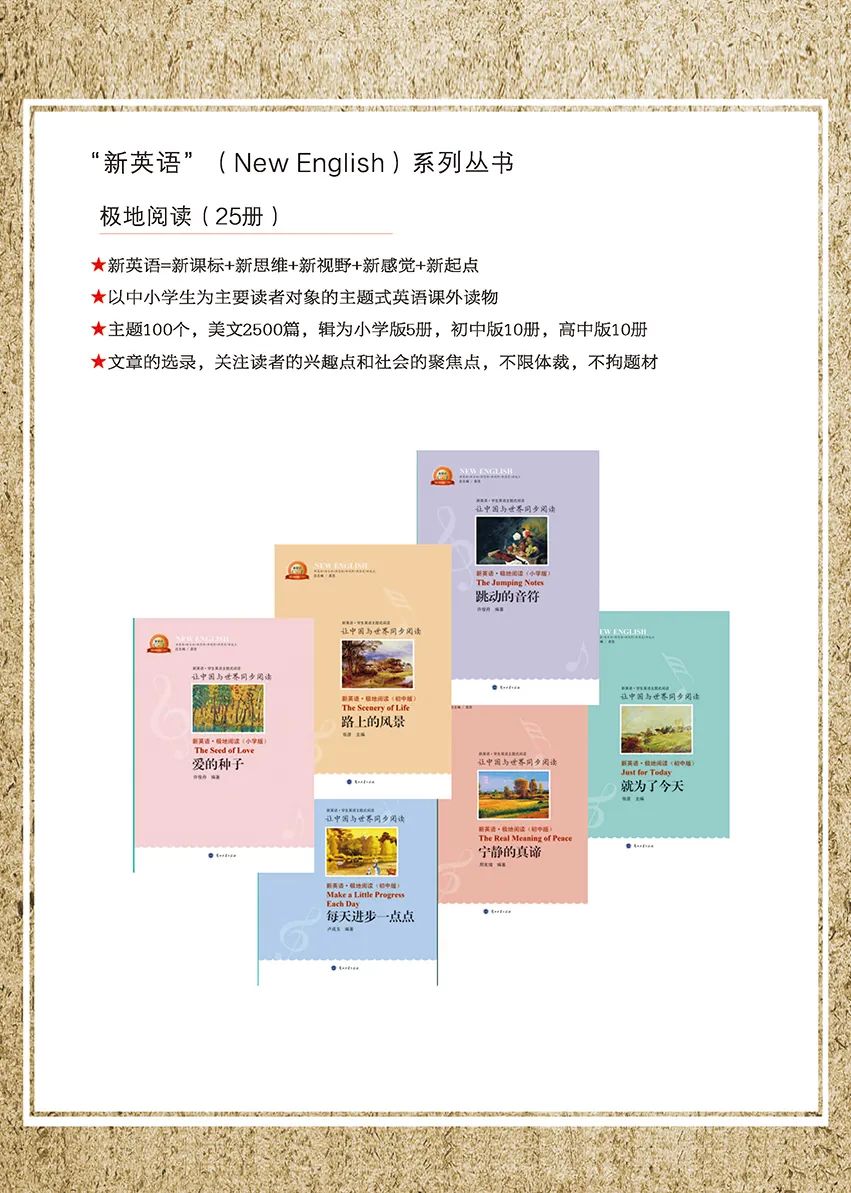 涉及與中小學生學習、生活、成長密切關聯(lián)的主題100個、美文2500篇,并依照難易梯度,輯為小學版5本,初中版10本,高中版10本。
