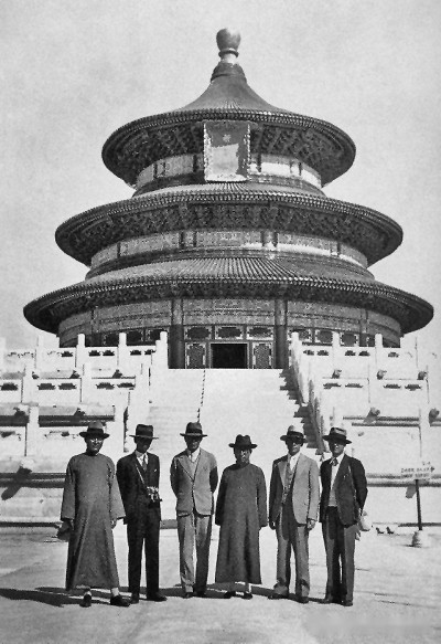 1935年5月9日,天壇圜丘壇開工,朱啟鈐、梁思成、劉敦楨、林徽因等古建專家,作為工程的技術(shù)顧問,楊廷寶則以基泰工程司總建筑師的身份指導(dǎo)工程實施的全過程。圖為祈年殿修繕完工紀(jì)念照。資料圖片