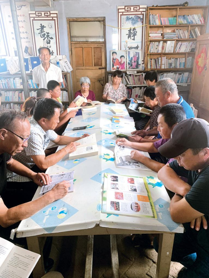 2021年8月24日,阜新市阜新蒙古族自治縣八家子鎮(zhèn)的鄉(xiāng)親們?cè)跁?shū)屋讀書(shū) 阜新市阜新蒙古族自治縣八家子鎮(zhèn)八家子村村委會(huì)供圖