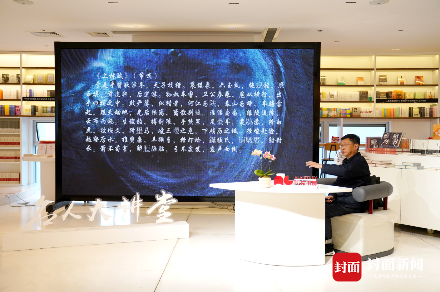作為資深作家,阿來在講述司馬相如其人以及他所處的時代特點、文史知識同時,還重點從文學的角度,講解了相關文史記載文章,還特別以《子虛賦》《上林賦》等司馬相如的作品為例,逐字逐句進行分析“賦”這個文體的優(yōu)、缺點。比如在《上林賦》中,司馬相如寫楚國之子虛先生出使齊國,子虛向烏有先生講述隨齊王出獵,齊王問及楚國,子虛極力鋪排楚國之廣大豐饒,以至云夢不過是其后花園之小小一角。烏有不服,便以齊國之大海名山、異方殊類,傲視子虛。