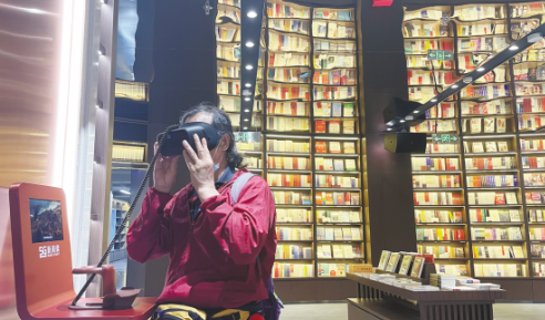 讀者在福州安泰書(shū)城體驗(yàn)5G閱讀。 朱丹丹 攝