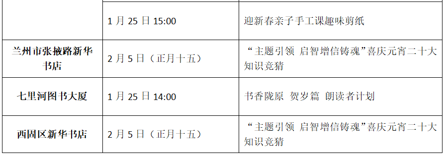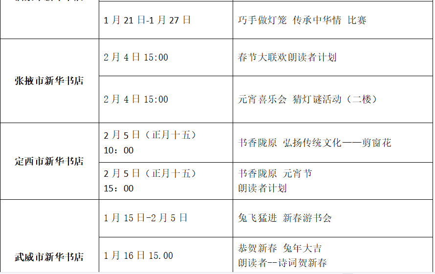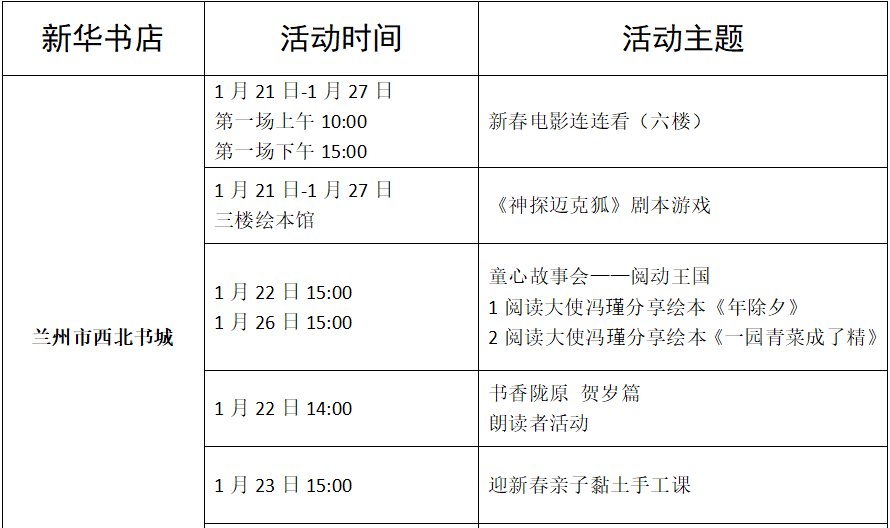 收藏!甘肅省各地新華書店春節(jié)期間活動(dòng)來了(附表)