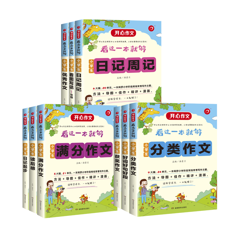 整個套系共15冊,既有融合小學各個寫作類型的分冊,也有根據(jù)年級劃分、同步教材的分冊,更有針對1-3年級學生的起步與看圖類分冊,涵蓋小學階段的所有產品線。本套書的范文新鮮,與名校、文學社合作,精選原創(chuàng)佳作,書中每個單元都有從名校與文學社的投稿中精選的學生原創(chuàng)佳作,并搭配詳盡的評析,讓學生不僅可以賞讀范文,還能了解其亮點,加以學習、借鑒。