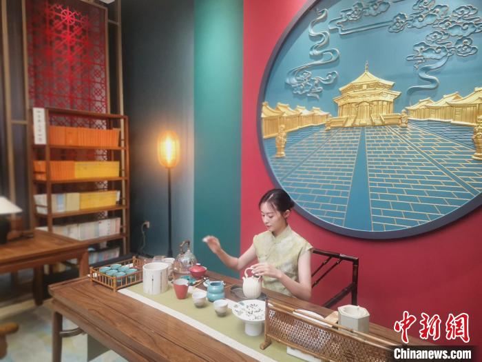 中新網(wǎng)沈陽4月19日電(記者 趙桂華 王藝霖) 中式園林的實(shí)景幕墻掩映著古風(fēng)桌椅、宮廷地?zé)?、中式書架等微景觀,讓讀者暢游書海的同時(shí),仿佛置身中國古代書院書房之中。