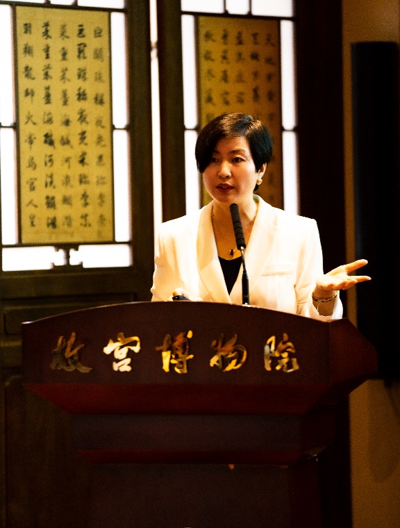 本書主編、故宮博物院院辦公室主任、研究館員果美俠與機(jī)械工業(yè)出版社副社長(zhǎng)陳海娟分別就圖書內(nèi)容和圖書策劃理念展開分享。果美俠主任介紹了繪本的創(chuàng)作理念、內(nèi)容及傳遞的價(jià)值觀,并通過隨書附贈(zèng)的有聲繪本劇、閱讀說明書和游戲卡牌等解析繪本在知識(shí)、技能和價(jià)值觀等層面為兒童讀者帶來的教育機(jī)會(huì)。陳海娟副社長(zhǎng)回顧了圖書策劃創(chuàng)作的歷程,并指出希望以本次合作為契機(jī),未來與故宮博物院深化交流合作,共同助力傳承中華優(yōu)秀傳統(tǒng)文化。