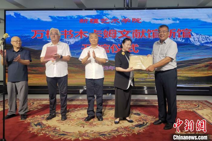 中新網(wǎng)烏魯木齊7月20日電 (胡嘉琛)“木卡姆記譜手稿不應(yīng)塵封在書柜,應(yīng)當(dāng)讓更多人了解它、傳承它。把它交到專心做研究的學(xué)者手中,我很放心。”萬桐書之女萬靜20日在新疆烏魯木齊說。當(dāng)日,萬桐書木卡姆文獻(xiàn)館新館在新疆藝術(shù)學(xué)院開館,萬靜將萬桐書1952年至1957年間收集整理的木卡姆記譜手稿贈(zèng)給校方。