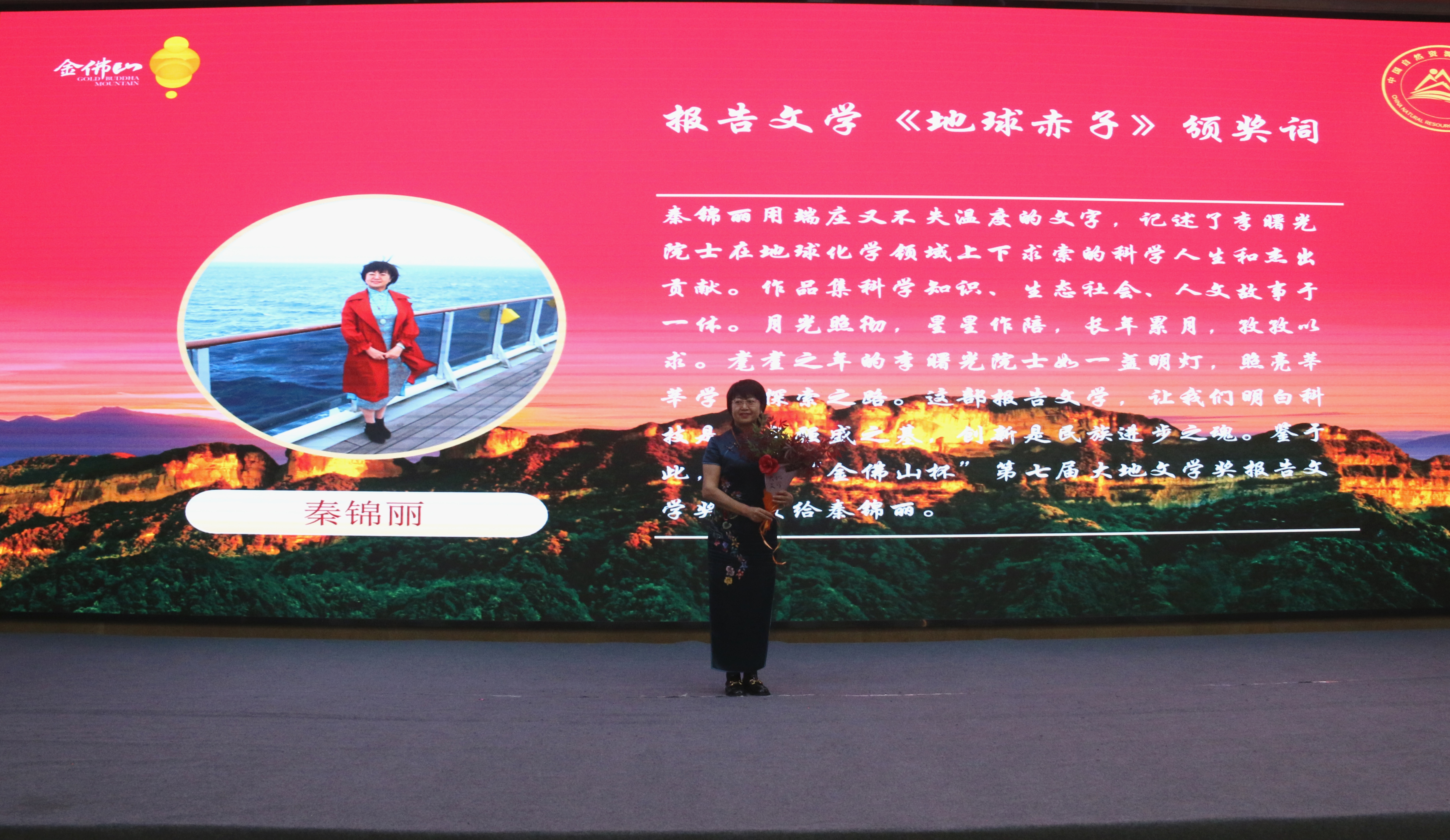 中國(guó)甘肅網(wǎng)4月28日訊 4月25日,“金佛山杯”第七屆大地文學(xué)獎(jiǎng)?lì)C獎(jiǎng)暨金佛山中國(guó)自然生態(tài)文學(xué)創(chuàng)作基地授牌儀式在重慶市南川區(qū)舉行。甘肅作家秦錦麗獲“金佛山杯”第七屆大地文學(xué)獎(jiǎng)報(bào)告文學(xué)獎(jiǎng)。