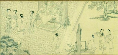 不過,這段帝妃之間的七夕故事確實有些不同尋常。七夕當晚應當是一派歡樂景象,但《長恨歌》偏偏突出此夜的靜謐氛圍,還特意說明,他們在締結(jié)誓言時絕無旁人。用七夕節(jié)俗烘托帝妃感情,早有范例,但表現(xiàn)方式卻與此完全相反。托名劉歆的《西京雜記》中便寫到漢高祖與戚夫人過七夕節(jié)的場景:“至七月七日,臨百子池,作于闐樂。樂畢,以五色縷相羈,謂為‘相連愛’。”臨百子池、奏于闐樂,說明這段故事發(fā)生在七夕宮宴之時。在這個公開場合,將五色絲縷系在二人之間,還給這種節(jié)物起了一個美麗的名字——“相連愛”,就是類似“永結(jié)同心”的意思。在節(jié)日場合公開賜予特殊節(jié)物,歷來便是帝王家表達親近恩寵的方式。