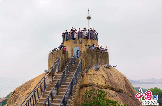 說(shuō)到自然風(fēng)光,便不能不提日光巖——這島上的最高峰。日光巖別名“晃巖”,相傳1641年,鄭成功來(lái)到此地,見(jiàn)此地風(fēng)景勝過(guò)吉林日光山,便把“晃”字拆開(kāi),稱(chēng)之為“日光巖”。要登臨此巖,一窺日光,便要辛勞走一段山路。其間渾圓的巨石層出不窮,蒼郁的古樹(shù)隨處可見(jiàn),更有閩南大厝、名人題字與這些自然風(fēng)景相得益彰。于是游人往往在心曠神怡中,路過(guò)“九夏生寒”“鷺江龍窟”,經(jīng)由“閩海雄風(fēng)”“古避暑洞”,不知不覺(jué)間,來(lái)到巖頂?shù)钠脚_(tái)。立定此處,憑欄遠(yuǎn)望,只見(jiàn)輕靈的云天近在咫尺,島上的屋宇盡收眼簾——別提有多么愜意!難怪有詩(shī)人寫(xiě)道:“一葉輕舟破霧霾,波濤滾滾此登臺(tái)。日光巖上憑欄望,隔岸清風(fēng)過(guò)海來(lái)。”(陳仁德句)