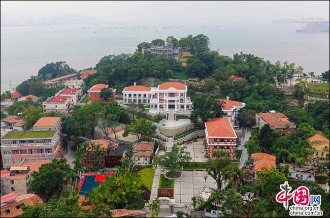 如果有這樣一座島嶼——遠(yuǎn)處是一方寧?kù)o的藍(lán)天,近處是一片幽深的綠樹(shù),藍(lán)與綠之間,是逶迤而去的清水紅磚……極目遠(yuǎn)眺,只見(jiàn)她濃淡相宜、遠(yuǎn)近相安,仿佛一幅肅穆祥和的印象派油畫(huà);細(xì)細(xì)聆聽(tīng),似乎還有一支悠揚(yáng)的鋼琴曲,在伴隨海鷗與濤聲,不時(shí)從畫(huà)中飄來(lái)……