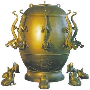 從此,張衡在天文學(xué)和星象體系方面的聰明才智如噴發(fā)的涌泉一發(fā)不可收:候風(fēng)儀、指南針、記里程鼓車(chē)、會(huì)飛的木雕等等,一個(gè)個(gè)科學(xué)發(fā)明成果相繼推出,并在公元132年研制出了地動(dòng)儀。地動(dòng)儀是世界上最早的觀測(cè)地震的儀器,它比歐洲創(chuàng)造類(lèi)似的地動(dòng)儀早1700多年。