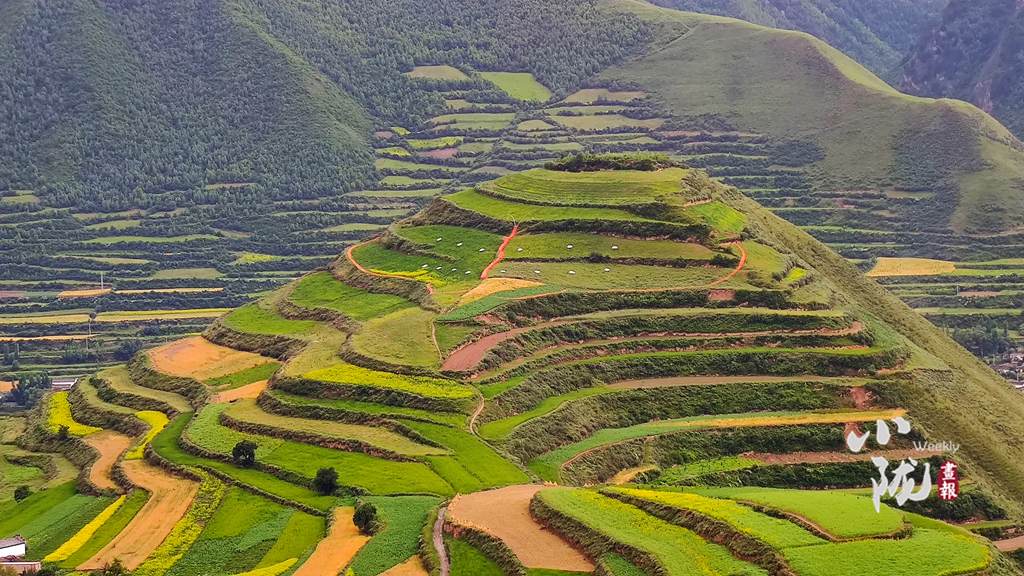 行走在冶力關(guān),目之所及皆是美景,在半山腰上向遠(yuǎn)處眺望,只見遠(yuǎn)山層巒疊翠,云蒸霞蔚,梯田綠黃交錯,如詩如畫。